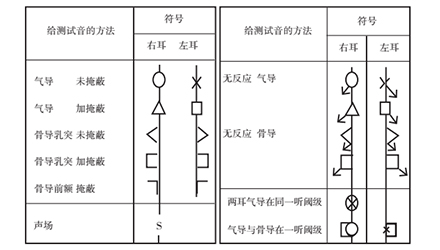 <span style="font-size:16px;"> 橫坐標(biāo)代表頻率,以倍頻程為單位分隔——請記住倍頻程的概念,它指兩個頻率間的間隔,高頻是相鄰低頻的兩倍;縱坐標(biāo)代表強度。右耳氣導(dǎo)用紅色“O”標(biāo)記,左耳用藍色“X”標(biāo)記,閾值就是頻率與強度的交叉點位置。比如某人左耳在250Hz處的聽閾是30dBHL,則在250Hz這一軸線上30dBHL中點劃一藍叉。30dBHL是聽閾,正常人的聽閾是-10dBHL~25dBHL,也就是說,這個人的聽力損失(也可稱做聽敏度下降)只有5dBHL。</span></p><center><img src="/upfiles/20181015013344992.png" alt="" /><br /></center><p></p><p style="text-align: center;"><span style="font-size:14px;">國家統(tǒng)一聽力標(biāo)記符號</span></p><p><span style="font-size:16px;"> 用聽力圖表示聽閾級時,應(yīng)采用上表所給符號,對氣導(dǎo)相鄰點用直線連接,骨導(dǎo)用虛線連接。如在聽力計最大輸出級仍無反應(yīng),可在相應(yīng)符號處垂直向下畫一箭頭,或在符號的下外角與垂直方約成45°角向下畫圖一箭頭(即左耳符號箭頭向右,右耳符號箭頭向左)。無反應(yīng)的符號記在聽力圖上代表聽力計最大輸出的聽力級處。如用彩色筆記錄,右耳符號和連線為紅色,左耳符號與連線為藍色。從篩選測聽法得出的結(jié)果應(yīng)清楚地照此表示出來。</span></p><p><span style="font-size:16px;"> 更多詳情請登錄m.wjbxw.com</span></p>" />
