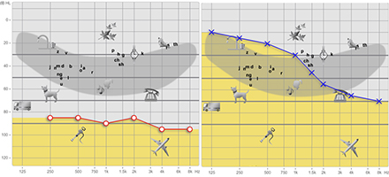 這些年來,助聽器技術(shù)和選配技能迅猛發(fā)展和提高,大都基于雙耳聽力損失相似的假設(shè)下的。當(dāng)遇到非對稱聽力損失的患者時(shí),驗(yàn)配師或許會有一些手足無措。</p><p> </p><center><img alt="" src="/upfiles/201904180225073724.png" width="440" height="250" /></center><p></p><p> 一、雙耳聽覺</p><p> 聲音到達(dá)兩側(cè)耳所經(jīng)歷的路徑是不同的。信息的交叉與混合出現(xiàn)于相對低級別的聽覺系統(tǒng)。大腦利用雙耳間的時(shí)間差、強(qiáng)度差、頻率差和相位差來區(qū)別各種聲音。雖然聲音來自兩側(cè),但正常聽力的人們會感受到單一的整體聲音。</p><p> </p><center><img alt="" src="/upfiles/201904180225122262.png" width="440" height="250" /></center><p></p><p> 這種雙耳聽覺生理優(yōu)勢同樣出現(xiàn)于為雙側(cè)聽損患者進(jìn)行雙耳選配時(shí)。在助聽器選配過程中,試圖讓佩戴者重新獲取統(tǒng)一的感覺,即佩戴者應(yīng)該聽到雙側(cè)助聽器整合后的聲音。</p><p> 但遇到非對稱聽力損失時(shí)情況變得有點(diǎn)復(fù)雜,因?yàn)閮蓚?cè)裸耳聽閾相差很大。當(dāng)為非對稱聽力損失患者選配助聽器時(shí),尋求統(tǒng)一的聲音不再是驗(yàn)配師唯一要做到的事情,即使它也很重要。</p><p> 二、非對稱性感音神經(jīng)性聽力損失</p><p> 很多原因都能導(dǎo)致非對稱感音神經(jīng)性聽力損失的發(fā)生,如腮腺炎病毒、突聾、內(nèi)耳自身免疫性疾病、聽神經(jīng)瘤等。此外,有些非對稱聽力損失是由于噪聲暴露引起的。比如,有些獵人或軍人會存在單側(cè)噪聲性聽障。</p><p> 三、非對稱性聽力損失的幾種選配情形</p><p> (1)兩側(cè)耳均可選配,但往往一側(cè)耳效果更佳</p><p> 雙耳均適宜放大,但一側(cè)耳效果更好。如果單看每側(cè)耳都是可以選配的,但兩耳之間還是存在效果的差異。</p><p> (2)一側(cè)耳可選配,另一側(cè)耳存在“聽覺死區(qū)”</p><p> 一側(cè)為可選配耳,另一側(cè)耳蝸存在“死區(qū)”選配效果不佳。這些患者有可能為“死區(qū)”耳考慮人工耳蝸,但由于一些個(gè)人原因及手術(shù)風(fēng)險(xiǎn),并未最終都選擇人工耳蝸。助聽器仍是首選的放大方案。一方面,由于聽力受損嚴(yán)重,聽力補(bǔ)償往往不能達(dá)到最適或適合級別;另一方面,因?yàn)榛颊咧荒芤蕾嚭枚穆犃Γ詴粗仳?yàn)配師的意見,驗(yàn)配滿意度會比較高。</p><p> (3)一側(cè)耳聽力正常,另一側(cè)耳可選配</p><p> 最復(fù)雜的一種情況是一側(cè)耳聽力正常,另一側(cè)耳可以選配助聽器。因?yàn)榛颊叱3谜B犃Χc助聽耳比較,所以在選配時(shí)需要考慮多方面的因素。聽力損失越重,選配就會越困難。然而,有些時(shí)候,患側(cè)佩戴助聽器不單因?yàn)橐哉Z交流,而可能是其他一些原因,譬如尋求安全感和定位感。</p><p> 四、非對稱性感音神經(jīng)性聽力損失的選配建議</p><p> (1)晚點(diǎn)再說不</p><p> 幾十年以前,曾經(jīng)流行過一些關(guān)于非對稱聽力損失雙耳選配效果不佳的說法。我們的建議是,如果驗(yàn)配師想確定患側(cè)耳是否適合選配助聽器,請給那側(cè)耳選配助聽器,給患者時(shí)間去適應(yīng),然后做出適合的調(diào)整,讓患者自述助聽器的獲益度。</p><p> 很多驗(yàn)配師擔(dān)心非對稱性聽力損失患者雙耳驗(yàn)配的獲益度不高,而放棄雙耳驗(yàn)配。我們的建議是嘗試看看接下來會發(fā)生什么。</p><p> </p><center><img alt="" src="/upfiles/201904180225177454.png" width="550" height="250" /></center><p></p><p> 有個(gè)不錯(cuò)的案例分享給大家。這位聽損患者的雙耳聽力圖呈現(xiàn)非對稱感音神經(jīng)性聽力損失,如上圖所示。右耳的裸耳言語識別率無法通過耳機(jī)測出。該患者左耳佩戴助聽器已有許多年,卻從未嘗試右耳佩戴助聽器。驗(yàn)配師為他的右耳選配了助聽器,并給予其足夠的時(shí)間來適應(yīng),后又進(jìn)行了一些調(diào)整。一段時(shí)間后,驗(yàn)配師分別測試了患者在安靜和噪聲環(huán)境下左耳與雙耳的詞語識別率,結(jié)果顯示雙耳佩戴比單耳佩戴在安靜環(huán)境下詞語識別得分從76%提高至92%,噪聲環(huán)境下從56%提高至88%(信噪比為+10 dB)。這個(gè)案例雖然表現(xiàn)為一側(cè)不可選配,但結(jié)果還是雙耳選配更佳。</p><p> (2)意在雙耳融合</p><p> 如果同樣一種聲音但兩側(cè)耳聽起來不同,很容易導(dǎo)致聲信息的判斷混淆,一般很少有人愿意雙耳佩戴。所以在為非對稱聽力損失進(jìn)行雙耳選配時(shí),必須力爭建立雙耳的平衡。至于提供多少增益、多少通道,具體情況需要具體分析。最終的目的是獲得雙耳融合的、整體的感覺。</p><p> (3)目標(biāo)增益不等于實(shí)際增益</p><p> 如果較差耳的增益少于目標(biāo)增益,患者往往會更易接受。若非對稱聽力損失的患者進(jìn)行了雙耳選配,通常較好耳會履行大部分聽覺信號處理工作,以此來理解言語聲。較差耳也會起作用,但期望值不能過高。若一定要按照目標(biāo)值對較差耳進(jìn)行補(bǔ)償,就會造成過度放大,從而帶來更多的失真。將較差耳增益值降低一些,或許是個(gè)不錯(cuò)的選擇。</p><p> 這引發(fā)了另一點(diǎn)思考。大多數(shù)助聽器都有音量控制。如果恰巧遇上了非對稱聽力損失,音量控制就是必選的一種微調(diào)了,患者可以在有需要的時(shí)候及時(shí)
