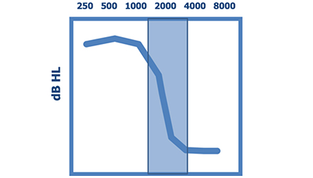本文根據多年臨床聽力學經驗,以及國內外的相關驗配經驗,從聽力評估、助聽器選擇和助聽器調試三方面匯總了處理復雜案例的通用驗配技巧。</p><p> 那么,針對不同的復雜案例,有哪些特別的調試小技巧嗎?早在20世紀60年代和70年代,聽力學家們認為,陡降型聽力損失的弱聽人士不適合佩戴助聽器。</p><p> 因為當時的助聽器頻寬非常有限,無法為該類弱聽人士提供足夠的補償。后來,隨著助聽器技術的發展,尤其是頻響范圍的擴展,陡降型聽力損失的弱聽人士也逐漸從佩戴助聽器中受益。</p><p> 但是,要想最大化助聽器效果,可不是簡單地補償各頻率段的聽力損失就行,而是需要認真分析陡降型聽力損失的特點,并對癥進行合理的聲音放大。</p><p> 那么...</p><p> 對于陡降型聽力損失,低頻、中頻、高頻,如何補償才能聽得舒服、聽得清楚?</p><p> 兩個聲音的問題怎么解決?</p><p> 要不要使用移頻?</p><p> 降噪有沒有用?</p><p> 什么是陡降型聽損?為什么調起來棘手?</p><p> 下圖是一個陡降型聽損的聽力圖,從圖中我們可以看到,倍頻程從1000Hz的10dB到2000Hz的60dB,下降幅度為50dB,遠超過20dB,即為“陡降”。如此陡降,所以我們看到加測中半倍頻程1500Hz的聽閾。</p><p> </p><center><img alt="" src="/upfiles/20190422014503476.png" width="440" height="250" /></center><p></p><p> 陡降型聽力損失的情況非常不一般,有個區域的聽閾正常(如上圖中的1000Hz以內頻率),但有個區域的聽閾卻非常差(如上圖中的4000Hz以上頻率)。</p><p> 換句話說,內耳里的耳蝸,有個區域的機制功能相對完整,而有個區域的毛細胞大面積受損且情況復雜。 所以,如果單純地覺得可以通過刺激高頻區的殘余毛細胞來解決聽力問題,就未免過于理想化了。</p><p> 陡降型聽損的驗配目標。低、中、高頻怎么調?</p><p> 那么,到底如何補償呢?這里就要說到陡降型聽力損失的兩大驗配目標,其中也明確了低、中、高頻聲音的調試技巧。1、佩戴舒適,音質可接受(無嘯叫、不堵耳);2、適當增強過渡區的可聽度(即增益)。</p><p> 佩戴舒適,音質自然</p><p> 作為驗配的首要目標,佩戴舒適,且在安靜環境下音質自然非常重要。我們知道,對于陡降型聽力損失的弱聽人士來說,他們往往在安靜環境下不戴助聽器也能聽得很好,會覺得不需要佩戴助聽器,以至于可能等上10到20年才考慮選配助聽器。</p><p> 此外,陡降型聽力損失的高頻聽損嚴重,助聽器在給高頻補償時,容易引起嘯叫;而低頻又聽力正常或接近正常,封閉耳塞或耳模很容易產生堵耳效應,讓弱聽人士聽自己的聲音覺得較大,或像在桶里。</p><p> </p><center><img alt="" src="/upfiles/201904220145084763.png" width="440" height="250" /></center><p></p><p> 綜合起來,給陡降型聽力損失的弱聽人士選配的助聽器需要佩戴舒適,且在安靜環境下音質自然,無嘯叫,不堵耳,否則很容易讓他們產生還不如不戴的感覺。</p><p> 所以驗配首要目標對應的實際上是對助聽器的選擇,從外形上選擇佩戴舒適(如開放耳驗配的助聽器),從性能上選擇音質自然的助聽器,讓初戴者愿意去接受助聽器的聲音。</p><p> 按臨床經驗來看,一般為中檔及以上檔次,具有較佳反饋抑制功能的開放式助聽器。</p><p> 增強過渡區的可聽度</p><p> 第二個驗配目標就是把調試重點放在陡降型聽力損失的過渡區域(如下圖中的藍色陰影區)上,這也是難點。</p><p> </p><center><img alt="" src="/upfiles/201904220145159048.png" width="440" height="250" /></center><p></p><p> 對于陡降型聽力損失,聽力最差的部分就是高頻,我們往往也是最關注高頻的補償。但是,想單純地通過補足高頻聽力損失來解決聽力問題,未免就太過理想化了。</p><p> 過去的十余年里,研究人員做了很多相關測試,結果表明:</p><p> 對于陡降型聽力損失,放大并恢復高頻的可聽度,對有些弱聽人士可能有用,能提高言語識別率;但對有些弱聽人士來說則沒用,其言語識別率得分反而下降。</p><p> 這是為什么呢?</p><p> </p><center><img alt="" src="/upfiles/201904220145212603.png" width="440" height="250" /></center><p></p><p> 這就要說到高頻殘余聽力的質量,即高頻殘余聽力的可用性。</p><p> 如果弱聽人士沒辦法利用高頻殘余聽力,那么,當助聽器放大這部分高頻后,可聽度恢復反而變成過度放大了,所產生的失真就會影響聽覺系統中運行正常的那部分,如此一來,反而聽得更不好。</p><p> 研究還顯示,高頻殘余聽力的質量是因人而異,弱聽人士間的差異性非常大,且往往很難通過定量的測試結果來判定高頻殘余聽力是否可用或有多大用。</p><p> 基于如上所述聽力的多變性,聽力學家們建議把補償重點放在聽力損失的過渡區域,主要為中頻。陡降型聽力損失的中頻聽力雖也呈明顯下降趨勢,但一般相較于高頻聽力好,為可用的聽力。</p><p> 我們可能都覺得高頻對言語理解的作用非常重要,確實,但不要忽略了中頻的作用。</p><p> </p><center><img alt="" src="/upfiles/201904220145402636.png" width="640" height="300" /></center><p></p><p> 此外,陡降型聽損的弱聽人士往往是語后聾成年人,即在聽力下降之前已經獲得了語言能力,他們不會僅依賴言語頻譜中的高頻部分理解言語,而是會運用其他言語線索。</p><p> 加之,理解單個詞語與理解對話不是一回事,對話的額外言語線索更多,更易理解。</p><p> 綜合起來看,對于陡降型聽力損失,溫和處理高頻增益(如適當減少增益),并適當增加中頻過渡區的可聽度(即增益)可以更好地幫助弱聽人