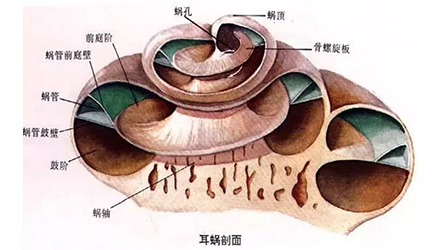 耳蝸中有四排毛細胞,其中只有一排(內毛細胞)用于直接感受聲音。另外三排(外毛細胞)則用于聽覺的動態處理,包括維持一個較大的可感知聲強范圍。人類可感知的聲壓變化高達萬億倍(1012,約130分貝;正是由于聲壓變化如此之大,人們才使用分貝這種對數關系來作為聲強單位)。此外,在聲音(空氣分子的振動)傳播到內毛細胞時,已經完成了初步的知覺加工,比如對不同頻率聲音的分離。長期聽力損傷常常涉及到這些毛細胞的損傷,無法通過簡單地擴大聲音強度來彌補。