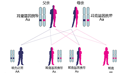 研究表明,約有60%的聽損與遺傳有關,目前已發現的聽損相關基因近300個。在正常人群中約有5%-6%的人至少攜帶一種聽損基因。</p><p> 你可能會問:</p><p> “哪幾個聽損基因是最常見的?”</p><p> “我會不會攜帶聽損基因?”</p><p> “遺傳的概率有多大?”</p><p> 全國性聾病分子流行病學調查結果顯示:</p><p> 21.01%的聾人攜帶GJB2基因突變,是中國最常見的致聾責任基因;大前庭導水管綜合征的責任基因SLC26A4是中國第二高發的致聾基因,其突變檢出率達12.7%;4.51%聾人攜帶線粒體12S rRNA基因突變,為藥物性聽損群體的主體。</p><p> 接下來,讓我們一一了解中國人常見的三大聽損基因。</p><p> </p><center><img alt="" src="/upfiles/201904290149522154.png" width="440" height="250" /></center><p></p><p> GJB2基因—最常見的先天性致聾基因</p><p> GJB2基因突變在1997年首次被發現,它在兒童語前聾中占20%,在兒童非綜合征聽損(NSHI)中占40%,是中國人最常見的致聾基因,在亞洲人群中最常見的突變位點為235delC。</p><p> 致聾原因:</p><p> 研究發現,GJB2基因編碼一種稱為“間隙連接的β2蛋白”,這種連接蛋白通過調控鉀離子水平來維持相鄰細胞之間的信號傳導分子的轉運。</p><p> GJB2基因在人類耳蝸中高度表達,形成聽覺的過程中需要將聲波轉換為神經沖動,這種轉化涉及許多過程,包括維持內耳中適當水平的鉀離子,突變的GJB2基因會對耳蝸的正常的聽覺功能造成嚴重影響。</p><p> 聽力損失表現:</p><p> GJB2相關性聽損一般為先天性,雙耳同時受累,聽損程度呈對稱性,少數表現為不對稱性,也有單耳受累報道。GJB2基因突變造成的聽力損失程度從輕度到集中度不等,大多表現為重度或極重度聽損。</p><p> 遺傳方式:</p><p> GJB2基因突變屬于常染色體隱性遺傳,這也就意味著兩個攜帶該突變基因的正常父母有概率會生出一個患兒。</p><p> 孩子聽損還是不聽損由兩個等位基因決定(A和a),兩個等位基因一個來自父親,一個來自母親,生育的時候父母各自隨機出一個等位基因“拼成”孩子的一對等位基因。</p><p> 舉個白話淺顯的例子:</p><p> A是顯性的,a是隱性的,也就是說A是“大哥”,a是“小弟”。</p><p> 有A在的時候,a聽A的;沒有A的時候,“小弟”a可能就“胡作非為”了。</p><p> 在這里,GJB2基因突變屬于常染色體隱性遺傳,“大哥”A是聽力正常的,“小弟”a是聽力不正常的。</p><p> 當“大哥”A不在,而兩個“小弟”a聚在一起的時候,它們就合伙搗亂,把孩子的耳朵“關上了”。</p><p> </p><center><img alt="" src="/upfiles/20190429014959343.png" width="440" height="250" /></center><p></p><p> 假設其他聽損相關基因均正常,不考慮概率極小的自身突變,僅討論GJB2基因:</p><p> 父母中只要有一個不攜帶該突變基因(AA+AA/Aa/aa)——孩子100%正常;</p><p> 父母均攜帶該突變基因(Aa+Aa)——孩子75%正常;</p><p> 父母中一個攜帶該突變基因而一個聽損(Aa+aa)——孩子50%正常;</p><p> 父母均聽損(aa+aa)——孩子0%正常。</p><p> 怎么辦:</p><p> 由于GJB2基因突變造成的聽力損失程度多為重度或極重度,并且聽覺系統的結構基本正常,常提示人工耳蝸植入效果良好。</p><p> 最好的辦法是通過新生兒聽力篩查及聽損基因篩查盡早發現并確診病因,盡早進行人工耳蝸植入,以保證聽覺言語能力的正常發展。</p><p> SLC26A4基因--大前庭導水管相關致聾基因</p><p> SLC26A4基因定位于人類染色體7q31,SLC26A4基因和大前庭導水管綜合征相關突變位點的發現,證實SLC26A4是大前庭導水管綜合征的責任基因。</p><p> 我們平時提到的“一巴掌打聾”、“一跤摔聾”其實都與SLC26A4基因突變有關,絕大多數大前庭導水管綜合征都是SLC26A4基因突變惹的禍。</p><p> 致聾原因:</p><p> SLC26A4基因編碼一種叫“Pendrin”的跨膜轉運蛋白,在機體離子成分平衡的維持中發揮重要作用。</p><p> 在內耳,Pendrin表達于內淋巴管、內淋巴囊、橢圓囊、球囊等處,異變的蛋白將對這些結構的正常生理功能產生影響,引發聽損。</p><p> </p><center><img alt="" src="/upfiles/201904290150051947.png" width="440" height="250" /></center><p></p><p> 聽力損失表現:</p><p> SLC26A4基因突變導致的大前庭導水管綜合征的典型表現為兒童時期的聽力損失,90%的患者為雙側性,聽力損失程度不一,可表現為接近正常或重-極重度。</p><p> 病程可為穩定性、進行性或波動性,聽力可逐步下降至全聾;跌倒、撞擊等行為或無外界影響都可能引發聽力的下降。</p><p> 遺傳方式:</p><p> SLC24A6基因突變屬于常染色體隱性遺傳,其遺傳方式同上面的GJB2基因突變。</p><p> 怎么辦:</p><p> 通過基因篩查可以在輕-中度聽損中篩選出聽力較好的患兒,對其正確指導,避免跌倒、撞擊等外界因素,有望保存參與聽力,使患者適應正常教育環境和社會。</p><p> 有殘余聽力的病人可佩戴助聽器,聽力損失達到重度或極重度應考慮植入人工耳蝸。</p><p> </p><center><img alt="" src="/upfiles/201904290150119123.png" width="440" height="250" /></center><p></p><p> 線粒體12SrRNA基因—藥物性聾相關致聾基因</p><p> 線粒體12SrRNA基因是藥物性聾直接相關的責任基因,約有20%-30%的藥物性聾與其相關,中國人最常見的突變位點包括A1555G、C1494T等。</p><p> 可以說12SrRNA基因突變是“一針致聾”的罪魁禍首。</p><p> 致聾原因:</p><p> 12SrRNA基因的突變會使得在蛋白質合成的過程中形成與氨基糖苷類藥物結合的位點,從而影響線粒體蛋白質的合成而導致藥物性聾。</p><p> 也有研究表明在一些未