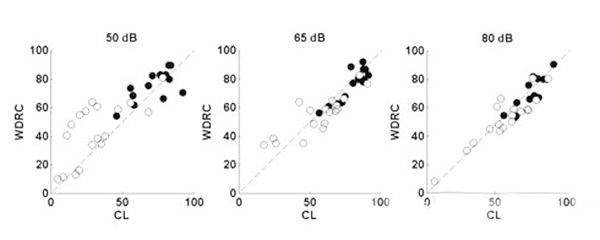 <span style="font-size:16px;"> 重度聽力損失是500Hz、1000Hz、2000Hz和4000Hz平均聽閾在61dB HL和80dB HL之間的聽力損失。重度聽損患者更趨向于:</span></p><p><span style="font-size:16px;"> 1、 聽力損失時間較久;</span></p><p><span style="font-size:16px;"> 2、 有助聽器佩戴史;</span></p><p><span style="font-size:16px;"> 3、 言語分辨率較低;</span></p><p><span style="font-size:16px;"> 4、 噪音環境中交流困難。</span></p><p><span style="font-size:16px;"> (一)重度聽力損失的特點</span></p><p><span style="font-size:16px;"> 60dB HL是單純外毛細胞損傷和內外毛細胞共同損傷的分界點,內毛細胞受損預示著重度聽力損失,這類患者的頻率選擇能力降低,在相關頻率范圍內難以分辨兩種聲音。這是噪聲環境下交流困難的主要原因。</span></p><p><span style="font-size:16px;"> 簡單來說,頻率選擇能力越低,自身降噪能力越差,噪聲下識別信號的能力也就越差。</span></p><p><span style="font-size:16px;"> (二)選擇合適的放大策略</span></p><p><span style="font-size:16px;"> 反饋抑制:這項技術在傳統方法的基礎上有更好的減少嘯叫的效果。</span></p><p><span style="font-size:16px;"> 指向性麥克風:有指向性功能的助聽器可以明顯提高信噪比(SNR)。現在自適應指向性麥克風廣泛地應用于大功率耳背機中。</span></p><p><span style="font-size:16px;"> 對于噪聲下言語交流困難的重度聽力損失患者,選配帶有指向性麥克風的助聽器效果顯著。</span></p><p><span style="font-size:16px;"> 聽力學家對重度聽損人士的指向性麥克風做過獲益度測試,發現平均言語識別能力提升了14%。</span></p><p><span style="font-size:16px;"> 重度聽損患者使用指向性功能時必須保證一定低頻增益,否則他們會感覺聲音不夠洪亮。</span></p><p><span style="font-size:16px;"> 寬動態范圍壓縮線路(WDRC):</span></p><p><span style="font-size:16px;"> 如下圖,白點是重度聽力損失患者的輔音識別得分,黑點是輕度至中度聽損患者的輔音識別得分;每位受試者佩戴四通道的耳背機,驗配采用NAL公式;測試言語聲強度分別為50dB SPL、65dB SPL和80dB SPL;比較WDRC和線性輸出壓縮限制(CL)兩種線路的得分。</span></p><center><span style="font-size:16px;"><img alt="" src="/upfiles/201809170201049787.png" width="600" height="240" /></span></center><p></p><p><span style="font-size:16px;"> 等分位于對角線附近代表兩種處理方式效果相似,得分位于對角線上方表示WDRC線路效果更好,而下方則表示CL線路效果更好。</span></p><p><span style="font-size:16px;"> 對重度聽損患者來說,輸入輕聲和中等聲時WDRC線路比CL線路效果更好;輸入響聲時兩種線路的區別并不大。所以使用WDRC線路可以獲得比CL線路更高的言語識別率。</span></p><p><span style="font-size:16px;"> 壓縮速度:壓縮越深可聽度越高,因為患者可以聽到更寬的聲音響度范圍。</span></p><p><span style="font-size:16px;"> 快反應壓縮(起效和釋放時間很短)可以降低元音(響度較大)增益并提高輔音(響度較小)增益,從而提高可聽度。</span></p><p><span style="font-size:16px;"> 所以理論上來講,對于重度聽損人士,使用多通道助聽器、低壓縮拐點、高壓縮比、音節壓縮,可以最大程度提高驗配效果。</span></p><p><span style="font-size:16px;"> 但壓縮越深就意味著有聲音失真越大,音節壓縮丟失了重要言語信息,導致輔音分辨不清。若要保留這些信息,則需要慢反應壓縮(起效和釋放時間較長)。</span></p><p><span style="font-size:16px;"> 最好的情況是在提高可聽度的同時還保證信號不失真,但目前很難實現,找到二者的平衡點是最佳的選配方案。</span></p><center><span style="font-size:16px;"><img alt="" src="/upfiles/201809170201141216.png" width="440" height="250" /></span></center><p></p><p><span style="font-size:16px;"> 上圖為一組重度聽力損失患者選配快速和慢速WDRC線路的言語識別率對比。</span></p><p><span style="font-size:16px;"> 在輸入聲級為50和65 dB SPL時,快反應壓縮線路的受試者得分明顯比慢反應壓縮線路的受試者差;在80 dB SPL輸入聲級下則并無明顯差別。</span></p><p><span style="font-size:16px;"> 對輕度和中度聽力損失患者來說,無論何種輸入聲級,兩種壓縮方式的得分都沒有明顯差別(并未在圖中顯示)。</span></p><p><span style="font-size:16px;"> 對極重度聽力損失患者來說,可聽度比其他任何信息都重要,快反應壓縮線路效果比慢反應壓縮線路更好。</span></p><p><span style="font-size:16px;"> 綜上所述,在使用多通道WDRC線路助聽器前提下,一定程度的可聽度是必須的,在這個基礎上要追求最低的失真(最低的壓縮比以及最慢的壓縮),才能達到最好的驗配效果。</span></p><p><span style="font-size:16px;"> 我們經常會遇到重度聽力損失患者,應該找到適合他們的驗配策略并提供心理和生理咨詢。</span></p><p><span style="font-size:16px;"> 助聽器選配的效果受到外周及中樞聽覺系統的能力限制,重度感音神經性聽力損失患者很少能在噪音環境中聽清。</span></p><p><span style="font-size:16px;"> 但是,通過仔細的驗配和回訪調試,我們依然可以取得很好的效果。重度聽力損失患者體現了聽覺系統的復雜性,提醒我們僅僅增加增益對提高患者交流能力是遠遠不夠的。</span></p><p><span style="font-size:16px;"> 更多詳情請登錄m.wjbxw.com</span></p>" />