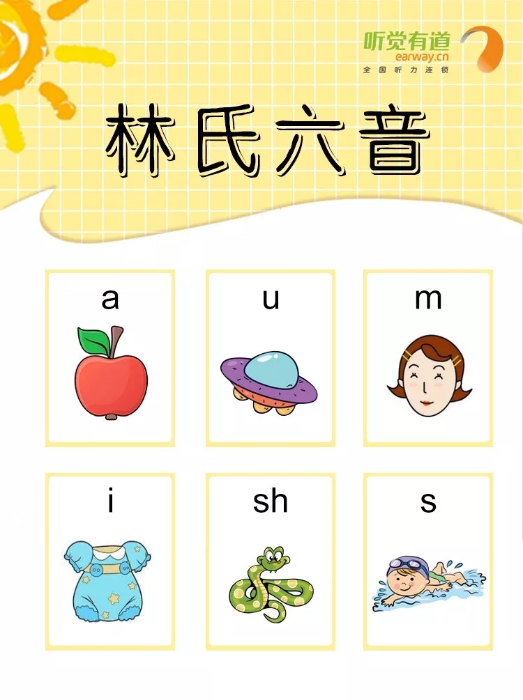 m、u、a、i、sh、s這六個音,包含了低頻、中頻和高頻。兒童家長可以通過孩子對這6個音的察知和分辨情況、測試距離和音量的變化,發現孩子的聽力問題。