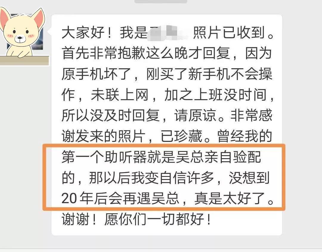 因為每年3月3日</p><p style="text-align: center;"> 是全國愛耳日,也是世界聽力日</p><p style="text-align: center;"> 我們把每年的3月</p><p style="text-align: center;"> 定義為有特殊意義的“愛耳月”</p><p style="text-align: center;"> 今年的3月</p><p style="text-align: center;"> 聽覺有道在全國各地開辦聽力大講堂</p><p style="text-align: center;"> 到社區普及聽力知識</p><p style="text-align: center;"> 驗配師們的足跡,踏過了許多角落</p><p style="text-align: center;"><img src="/upfiles/201904040216174480.gif" width="640" alt="" /><br /></p><p style="text-align: center;"> 愛耳月</p><p style="text-align: center;"> 您見證了我們這些活動嗎?</p><p style="text-align: center;"><br /></p><p style="text-align: center;"> <strong> 聽力大講堂</strong></p><p style="text-align: center;"><img src="/upfiles/201904040216244480.gif" width="640" alt="" /><br /></p><p style="text-align: center;"> 3月3日,聽覺有道聯合中國聾協等單位在廣州、深圳、成都、青島、淄博等地,舉辦聽力大講堂。</p><p style="text-align: center;"> 我們的主要任務,是普及聽力知識,增強大家的愛耳意識,任重而道遠,要不斷努力。</p><p style="text-align: center;"><br /></p><p style="text-align: center;"> <strong>耳保健操教學</strong></p><p style="text-align: center;"><img src="/upfiles/20190404021632751.gif" width="640" alt="" /><br /></p><p style="text-align: center;"> 這個愛耳月,聽覺有道帶大家一起做耳保健操。</p><p style="text-align: center;"> 中醫認為,耳為宗脈之所聚,十二經脈皆通于耳,刺激耳朵的經絡,可激發身體潛能,調整臟腑,改善健康,預防疾病。</p><p style="text-align: center;"><br /></p><p style="text-align: center;"><strong> 聽覺有道走進社區</strong></p><p style="text-align: center;"><img src="/upfiles/201904040410117030.gif" width="640" alt="" /><br /></p><p style="text-align: center;"> 聽覺有道走進社區,到地方街道、敬老院、鄉鎮、寫字樓等地方,免費聽力篩查和提供聽力咨詢。</p><p style="text-align: center;"> 事實上,一直以來,幾乎每天都能在全國很多角落,找到驗配師們公益義診的身影。</p><p style="text-align: center;"><br /></p><p style="text-align: center;"> <strong>兒童聽力免費評估</strong></p><p style="text-align: center;"><img src="/upfiles/201904040219453824.gif" width="640" alt="" /><br /></p><p style="text-align: center;"> 在廣州,聽覺有道聯合美國AB耳蝸,為廣東的小朋友提供價值800元的兒童聽力評估。</p><p style="text-align: center;"> 聽力師們使盡畢生絕學,從聽力評估到康復指導,一對多(聽力師),全程免費,絕對專業。</p><p style="text-align: center;"><br /></p><p style="text-align: center;"> <strong>基因篩查公益講座</strong></p><p style="text-align: center;"><img src="/upfiles/201904040220079015.gif" width="640" alt="" /><br /></p><p style="text-align: center;"> “我們幾代人都沒有耳聾的,為啥孩子聽力不好?”“做過基因篩查說沒有問題,我能懷二胎嗎…”</p><p style="text-align: center;"> 3月30日,聽覺有道、小百靈聯合華大基因,在山東為家長們答疑解惑。</p><p style="text-align: center;"><br /></p><p style="text-align: center;"> <strong>聽覺有道捐贈助聽器</strong></p><p style="text-align: center;"><img src="/upfiles/201904040220154347.gif" width="640" alt="" /><br /></p><p style="text-align: center;"> 四川的愛耳日活動上,聽覺有道決定為舞者余祥和捐贈助聽器,后來為其選配了一對美國貝爾通摯音系列助聽器。</p><p style="text-align: center;"> 小余本身也是一個非常努力的人,這也許就是“越努力,越幸運”的印證吧。</p><p style="text-align: center;"><br /></p><p style="text-align: center;"> <strong>免費試戴助聽器30天</strong></p><p style="text-align: center;"><img src="/upfiles/201904040220225775.jpg" width="640" alt="" /><br /></p><p style="text-align: center;"> 愛耳月之后,我們持續4個月“免費試戴助聽器30天”的活動宣告結束。</p><p style="text-align: center;"> 這個活動自推出以來,就受到了廣泛歡迎和好評。</p><p style="text-align: center;"><br /></p><p style="text-align: center;"> 而四月,我們開啟的新活動是——</p><p style="text-align: center;"> <strong>電子護理寶大砍價活動</strong></p><p style="text-align: center;"><a href="http://m.wjbxw.com/newsDetail-102859.html" target="_blank"><img src="/upfiles/201904040220303300.jpg" width="640" alt="" /></a><br /></p><p style="text-align: center;"><br /></p><p style="text-align: center;"> 愛耳月</p><p style="text-align: center;"> 我們收到了一些“小歡喜”</p><p style="text-align: center;"><img src="/upfiles/201904040220397379.jpg" width="640" alt="" /><br /></p><p style="text-align: center;"> 收到滿屏的歡喜是聽力師的小確幸</p><p style="text-align: center;"><br /></p><p style="text-align: center;"><img src="/upfiles/201904040221005742.jpg" width="640" alt="" /><br /></p><p style="text-align: center;"> 再遇老朋友刷新聽力師的幸福感</p><p style="text-align: center;"><br /></p><p style="text-align: center;"><img src="/upfiles/201904040221101075.jpg" width="640" alt="" /><br /></p><p style="text-align: center;"> 聽器欣聞萬籟陳好字,好詩,好厲害</p><p style="text-align: center;"><br /></p><p style="text-align: center;"><img src="/upfiles/201904040221196440.jpg" width="640" alt="" /><br /></p><p style="text-align: center;"> 深圳周叔叔送來的筆情誼筆墨生花</p><p style="text-align: center;"><br /></p><p style="text-align: center;"><img src="/upfiles/201904040221275327.jpg" width="640" alt="" /><br /></p><p style="text-align: center;"> 用戶送的手工坐墊認可是最好回報</p><p style="text-align: center;"><br /></p><p style="text-align: center;"><img src="/upfile