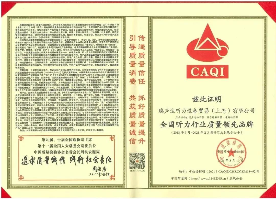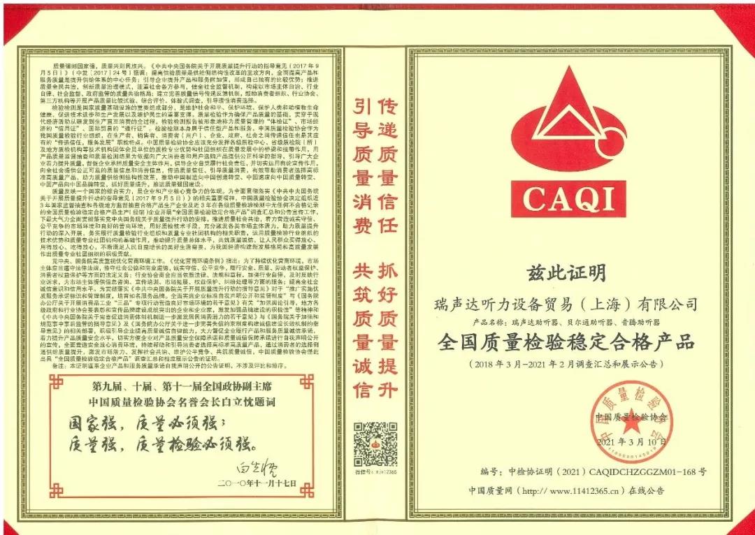 <span style="white-space:pre"> </span>質(zhì)量是企業(yè)和產(chǎn)業(yè)核心競爭力的體現(xiàn)。<br /><br /> 作為對貝爾通助聽器產(chǎn)品質(zhì)量和服務(wù)的肯定,2021年中國質(zhì)量檢驗協(xié)會再次向貝爾通助聽器頒發(fā)了三項榮譽證書,以期能引導(dǎo)用戶選擇高標準高質(zhì)量的產(chǎn)品,傳遞質(zhì)量信任,優(yōu)化消費環(huán)境。<br /><br /> 這三項榮譽包括“全國產(chǎn)品和服務(wù)質(zhì)量誠信示范企業(yè)”“全國聽力行業(yè)質(zhì)量領(lǐng)先品牌”“全國質(zhì)量檢驗穩(wěn)定合格產(chǎn)品”。<br /><br /> 除了貝爾通助聽器,瑞聲達和音騰助聽器亦同獲此譽。<br /><br /> CAQI<br /><br /> 全國產(chǎn)品和服務(wù)質(zhì)量誠信示范企業(yè)<br /><br /> 全國聽力行業(yè)質(zhì)量領(lǐng)先品牌<br /></span><p style="text-align: left;"><span style="font-size:16px;"> 全國質(zhì)量檢驗穩(wěn)定合格產(chǎn)品</span></p><p style="text-align: center;"><img src="/upfiles/202103160512466507.jpg" width="640" alt="" /> <img src="/upfiles/202103160512463998.jpg" width="640" alt="" /> <img src="/upfiles/202103160512465078.jpg" width="640" alt="" /><br /></p><p style="text-align: center;"><br /></p>" />